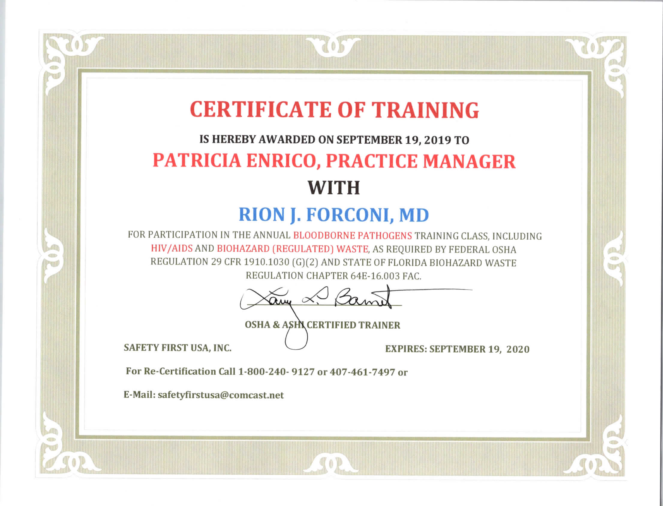 OSHA CERTIFICATES OF TRAINING